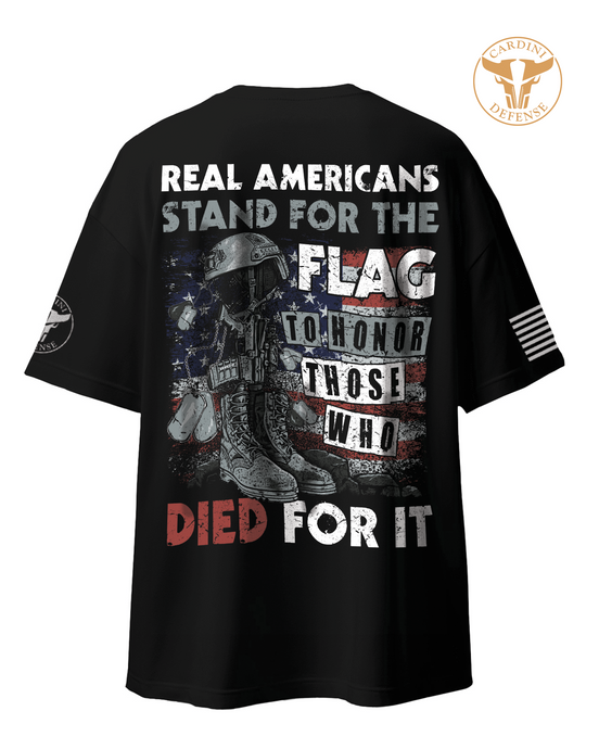 Cardini Defense “Freedom Seekers” Eagle Graphic Tee – Men’s Patriotic Two-Sided Shirt, 60/40 Cotton-Poly Blend, Black